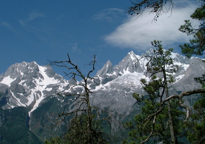 玉龍雪山位于玉龍納西族自治縣境內(nèi),是北半球最南的大雪山。南北長(zhǎng)35公里,東西寬13公里,面積960平方公里,高山雪域風(fēng)景位于海拔4000米以上,以險(xiǎn)、奇、美、秀著稱于世,隨著時(shí)令和陰晴的變化,有時(shí)云蒸霞蔚、玉龍時(shí)隱時(shí)現(xiàn);有時(shí)碧空如水,群峰晶瑩耀眼;有時(shí)云帶束腰,云中雪峰皎潔,云下崗巒碧翠;有時(shí)霞光輝映,雪峰如披紅紗,嬌艷無(wú)比。整個(gè)玉龍雪山集亞熱帶、溫帶及寒帶的各種自然景觀于一身,構(gòu)成獨(dú)特的“陽(yáng)春白雪”主體景觀。雨雪新晴之后,雪格外的白,松格外的綠,掩映生態(tài),移步換形,很像是白雪和綠松在捉迷藏,蔚為奇觀。