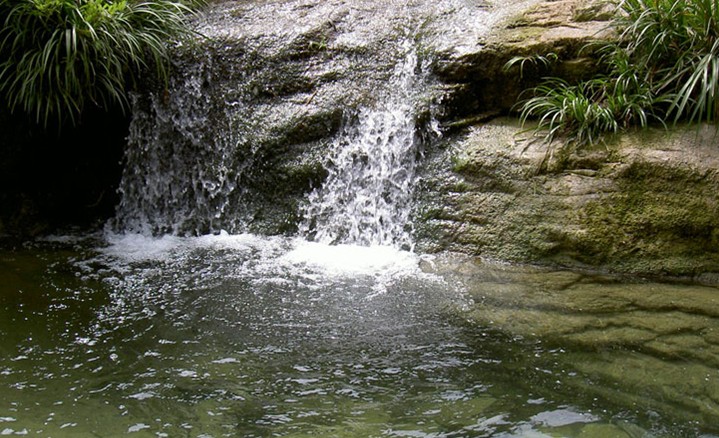 在椎牛花柱兩側(cè)不遠(yuǎn)處有一天然石門,高350多米,人曰“玉泉門”。玉泉門左右絕壁千仞,絕壁上多生青松、灌木,石門由距今五六億年前的巨巖構(gòu)成。巖壁陡峭如峭,兩扇石門恰似半開半掩的門扇,清爽的山風(fēng)直從石門里吹出來,給人送來一陣涼意。誰若在這靜謐的幽谷中大喊一聲,空曠的峽谷便久久地蕩起悠悠的回音。抬頭仰望,巨壁夾天,大有巖山壓境之勢(shì),令人驚恐。真是“峰與天相連,人在窯中行”啊!玉泉門為深淵奇峽,淵谷很窄,僅十余米,宛如古關(guān)隘。清澈的玉泉溪從這關(guān)隘巖門中擠石而出,滑下石級(jí),叮咚之聲,如撥琴弦。在玉泉門內(nèi)藏著一汪潭池,潭邊巖石上布滿絨絨的絲苔,經(jīng)水浸潤(rùn),綠得晶亮,象孔雀綠羽。潭水也著碧綠色,如同一顆綠珠、一塊翡翠。進(jìn)入玉泉門,版權(quán)所有山東聊城聊之旅國(guó)際旅行社有限公司,轉(zhuǎn)載必究!然明朗,別有洞天。溯玉泉溪而上,兩岸巧石寄花應(yīng)有盡有,一步一景,美不勝收