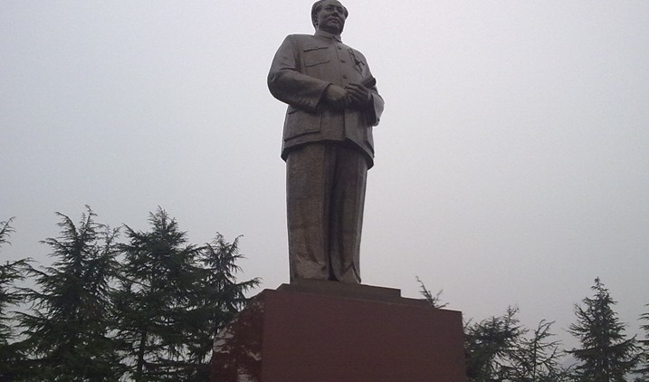 毛主席的銅像矗立在韶山?jīng)_廣場。這里背襯韶峰,是韶山?jīng)_的中心,對面就是毛氏宗祠和毛澤東紀念館。