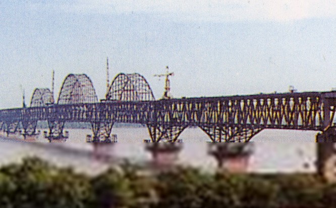 九江長江大橋,始建于1973年12月,由鐵道部大橋工程局勘察設(shè)計(jì),第215橋梁工程處組織施工。是繼武漢長江大橋之后,我國在長江上建造的第八座大橋,也是我國目前最長、工程量最大的鐵路、公路兩用橋。無論是橋的設(shè)計(jì)、施工工藝,還是新型建筑材料的使用等方面,都反映了我國迄今最先進(jìn)的建橋水平。整個(gè)大橋設(shè)計(jì)新穎,造型優(yōu)美,工藝獨(dú)特,雄偉壯觀。大橋鐵路引橋采用的無碴無枕預(yù)應(yīng)力箱形梁,在我國建橋史上還是第一次。主河槽216米寬的大跨度,也居全國橋梁之首。