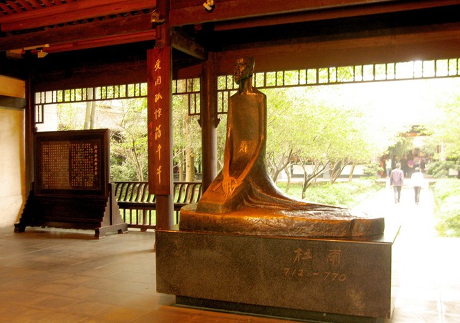 杜甫先后在此居住近四年,創(chuàng)作詩(shī)歌流傳至今的有240余首。其中的《聞官軍收河南河北》現(xiàn)已成為不少地區(qū)學(xué)生必學(xué)課。草堂故居被視為中國(guó)文學(xué)史上的“圣地”。