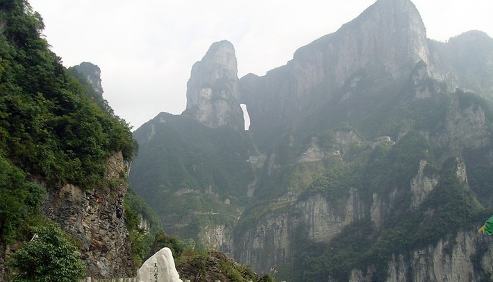 天門山,古稱云夢山、嵩梁山,是張家界永定區(qū)海拔最高的山,距城區(qū)僅8公里,因自然奇觀天門洞而得名,最早被記入史冊的名山。三國吳永安六年(公元 263 年),嵩梁山忽然峭壁洞開,玄朗如門,形成迄今罕見的世界奇觀――天門洞,從此而得名天門山。山頂相對平坦,保存著完整的原始次生林,有著很多極為珍貴和獨(dú)特的植物品種,森林覆蓋率達(dá)90%。其間古樹參天,藤蔓纏繞,青苔遍布,石筍、石芽舉步皆是,處處如天成的盆景,被人譽(yù)為世界最美的空中花園和天界仙境。2012年7月22日中午,法國輪滑大師讓伊夫•布朗杜挑戰(zhàn)天門山。