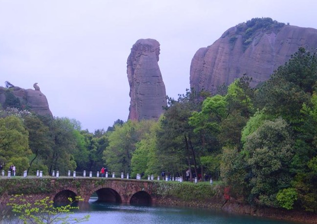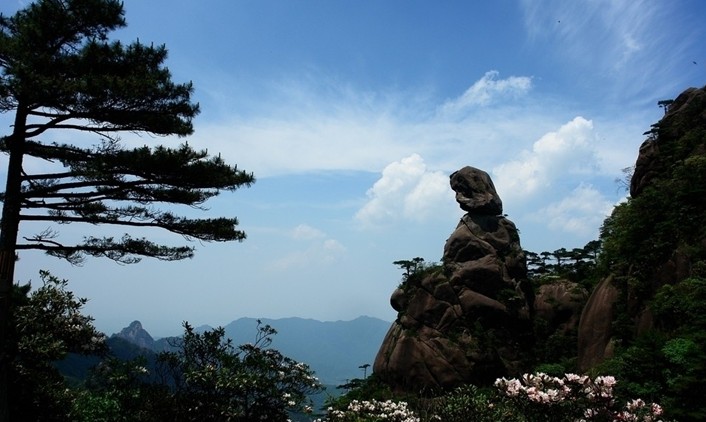 東方女神位于南清園東北部,三清山標(biāo)志性景觀。海拔1180余米,通高86米。整座山體造型就像一位秀發(fā)披肩的少女,天地造化,鬼斧神工。億萬年來,女神端坐山峰,默然注視蕓蕓眾生,神態(tài)祥和。傳說女神為西王母第二十三女,名瑤姬。世人認(rèn)為她是春天的化身,因而又稱之為“東方女神”。