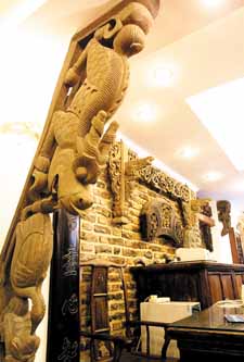 粵唯鮮位于天津小洋樓集中區(qū)域—五大道附近,這里不僅僅是家餐廳,它的另一個(gè)招牌是華蘊(yùn)博物館,馮驥才為它題詞:“能吃的博物館”,也算是中國唯一了。華蘊(yùn)博物館所陳列的展品囊括了西周至清朝各個(gè)歷史時(shí)期最典型的青銅器、銅器、木雕、石器、老門窗、彩繪木人、煙具、屏風(fēng)、座鐘、桌椅、木箱、提盒、老鐵、鐘等100多種的3000余件文物最早的可追溯到公元二三千年前。華蘊(yùn)博物館的特色之處還有世界上第一的石頭酒吧。粵唯鮮的石頭酒吧開創(chuàng)了石文化第一,這里擺放的石頭多是漢白玉的,囊括了北齊、北魏、宋元明清等朝代的300余塊石頭。而且石頭酒吧所收藏的漢白玉石器無論是其數(shù)量還是質(zhì)量在全國乃至全世界都是一流的。酒吧的格調(diào)是中西合璧,古樸、不失現(xiàn)代風(fēng)格。