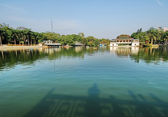 人民公園又稱白龍公園。面積50多萬平方米。圓內(nèi)有一約7萬平方米的白龍湖,湖水澄碧。據(jù)宋人王象之《興地記勝》載,宋名將狄青曾駐望仙坡,見坡下湖邊一群白羊頗似龍形。因此以白龍名此湖。可見白龍湖已經(jīng)有上千年的歷史。湖岸翠竹掩映,垂柳搖曳。湖心有小島,島西的九曲橋和島北的三孔月橋?qū)u與湖岸相連。湖面的游艇,或藍(lán)天下競(jìng)渡,或綠蔭徜徉,亦成一景。