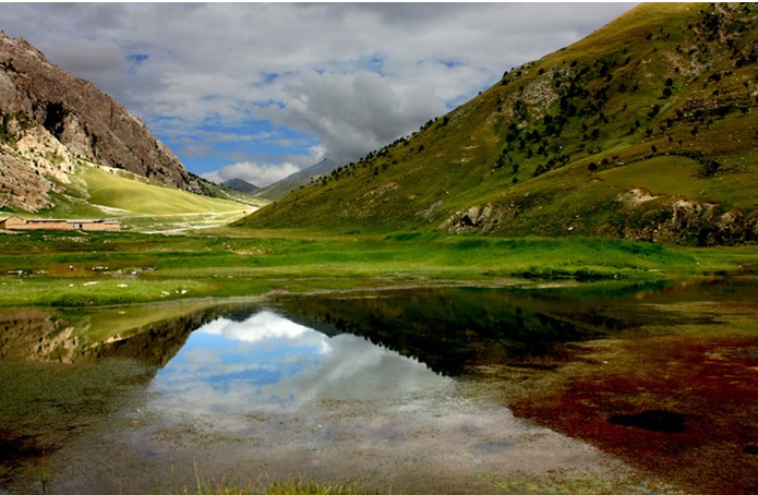 柏樹山位于自治州首府德令哈以北的柏樹山,古柏蓊郁,滿山蒼翠,柏間紅柳叢叢,山花簇簇;瀑布飛珠濺玉,訇然有聲;山頂白云繚繞,宛如輕紗;山下,清澈的河池里倒映著山峰挺拔的身影。微風(fēng)襲來,碧波蕩漾,藍(lán)天、群山、池水相映成趣,構(gòu)成一幅絕妙的高原山水畫。