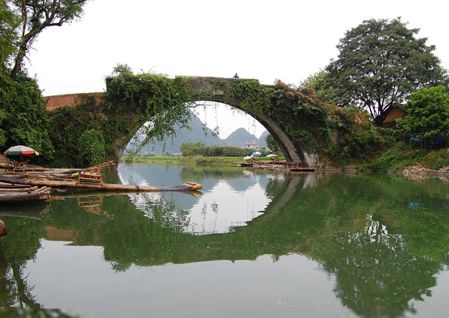 走進(jìn)遇龍河流域,你不但看得到“精縮”了的漓江山水,還可以看到古色古香的村落,十分風(fēng)趣的水車,造型各異的古橋。這是一條很有文化品位的河,有水、有山、有竹、有草、有橋梁、有水車、有建筑。其透視出來的歷史氛圍和歲月滄桑,明顯要優(yōu)于漓江。