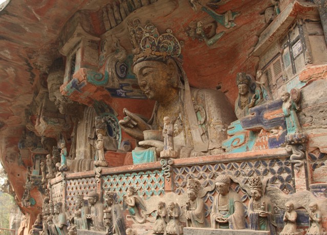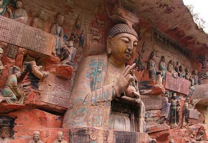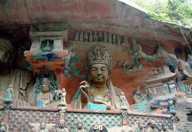 重慶市的大足石刻以其規(guī)模宏大、雕刻精美、題材多樣、內(nèi)涵豐富和保存完整而著稱于世。它集中國佛教、道教、儒家“三教”造像藝術(shù)的精華,以鮮明的民族化和生活化特色,成為中國石窟藝術(shù)中一顆璀璨的明珠。它以大量的實(shí)物形象和文字史料,從不同側(cè)面展示了9世紀(jì)末至13世紀(jì)中葉中國石刻藝術(shù)的風(fēng)格和民間宗教信仰的發(fā)展變化,對中國石刻藝術(shù)的創(chuàng)新與發(fā)展做出了重要貢獻(xiàn),具有前代石窟不可替代的歷史、藝術(shù)和科學(xué)價(jià)值。許多歐洲人、尤其是法國人,對大足石刻寵愛倍加。