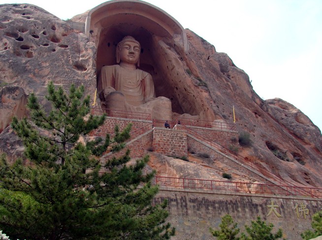 最為引人注目的,是須彌山入口處高達20.6米的彌勒大座佛。它高坐于唐代大中三年(849年)開鑿的一個馬蹄形石窟內(nèi),身披袈裟,頭流螺髻;臉如滿月,雙耳垂肩,神情莊重,十分壯觀。這座大佛比云崗石窟中最大的十九窟坐佛和龍門石窟的奉先寺盧舍那佛還高,是全國最大的造像之一。走近觀察,只見那佛高大魁梧,足有五六層樓高,耳朵有兩人高,眼窩直徑1米多,佛雖大,但雕刻卻十分的精致。專家說,這完全是一塊完整的罕見巨石雕琢出來的,充分顯示了中國古代工匠的高超技藝和雄偉氣魄。唐代統(tǒng)治者提倡佛教,武則天曾下令全國各州建大佛寺,造大佛像。有學(xué)者推測,這等大佛可能是在武則天掀起的崇拜佛的浪潮中建造的。站在大佛的腳下,眼前似有云霧繚繞,耳旁隱聽山泉叮咚,山石霧松組成大西北黃土高原上獨特的山水畫卷