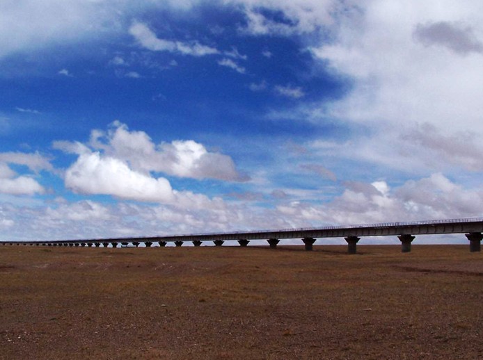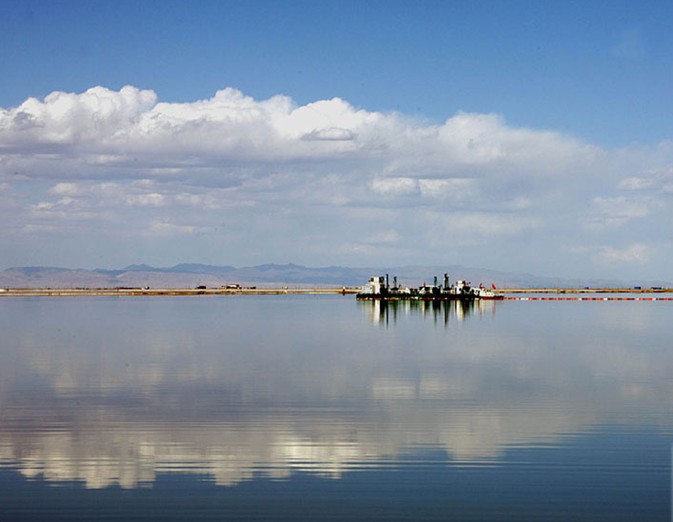 萬(wàn)丈鹽橋道寬路長(zhǎng),風(fēng)光無(wú)限。人們乘車(chē)來(lái)到這里,只見(jiàn)筆直坦蕩的路橋,象一把利劍將浩瀚的鹽湖一劈兩半。鹽橋兩旁有鉀肥廠的廠房,宿舍,有溝壑一般的采礦點(diǎn),不遠(yuǎn)處還有舉世聞名的青藏鐵路,一列列長(zhǎng)蛇似的火車(chē),吞云吐霧,鳴鳴吼叫著從湖面上飛馳而過(guò)。