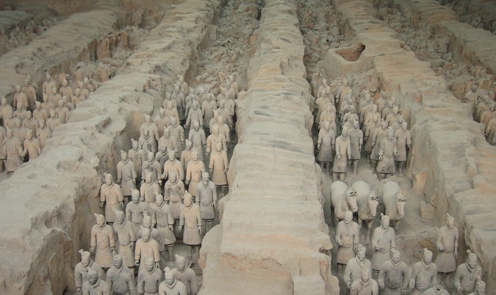有人認為,秦始皇陵實質(zhì)上是按古代禮制“事死如事生”的要求特意設計的。因為秦始皇即位后,用了大部分的精力和時間進行統(tǒng)一全國的戰(zhàn)爭。當時他率領(lǐng)千軍萬馬南征北戰(zhàn),從而并吞了六國,統(tǒng)一了天下。為了顯示他生前的功績,以軍隊的形式來陪葬似乎是一種必然。