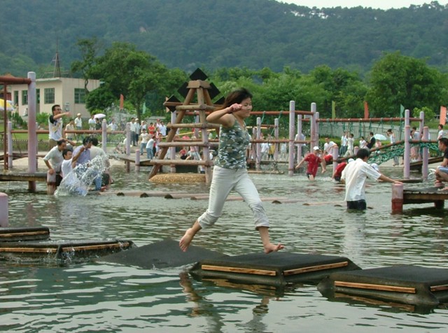 從笑翻天大門往前走50米,再左拐20米便可以看到笑翻天樂園,這里是水上玩點和陸地玩點的聚集地,在這里有花樣繁多的項目:踏籠飛渡、百尺竿頭、孤島求生、飛躍激流、水上鋼絲、踏水無痕、情侶橋……讓你盡情的在挑戰(zhàn)和驚險中突破自我。此外,軍體平衡木、高空電網(wǎng)讓你體驗軍隊生活的快樂。畢業(yè)墻讓大家一起來翻越過去,一起畢業(yè)。這里還有兒童游玩區(qū),帶孩子的家長可千萬不要錯過,讓我們一起和家人闖關(guān)吧。