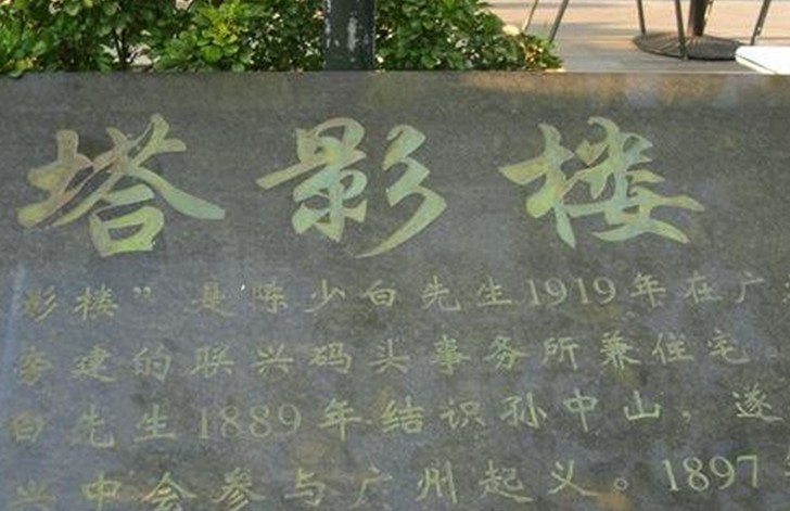塔影樓,位于廣州市荔灣區(qū)粵海關(guān)大樓對(duì)面的沿江西路36號(hào),是一棟屹立在珠江邊上的墨綠色4層樓房。塔影樓是新會(huì)籍陳少白先生所建的聯(lián)興碼頭事務(wù)所兼住宅。陳少白于1899年奉孫中山命創(chuàng)辦《中國(guó)日?qǐng)?bào)》宣傳革命并籌措經(jīng)費(fèi)。