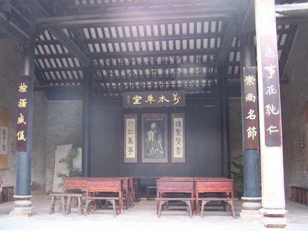 草堂,位于中山四路 長興里3號(hào)。是中國近代資產(chǎn)階級(jí)維新派創(chuàng)辦的著名學(xué)堂。原為邱氏書室,是廣東省邱氏子弟到省城應(yīng)試的居住處。萬木草堂原為邱氏書室,建于清嘉慶九年(1804),為三間三進(jìn)、兩天井、硬山頂?shù)撵籼檬浇ㄖB祷彝餐撸瑑蛇叡A粲胁糠只宜埽啻u墻石腳,磚木結(jié)構(gòu),面闊三間15.8米,深三進(jìn)35.3米,面積約為663平方米。