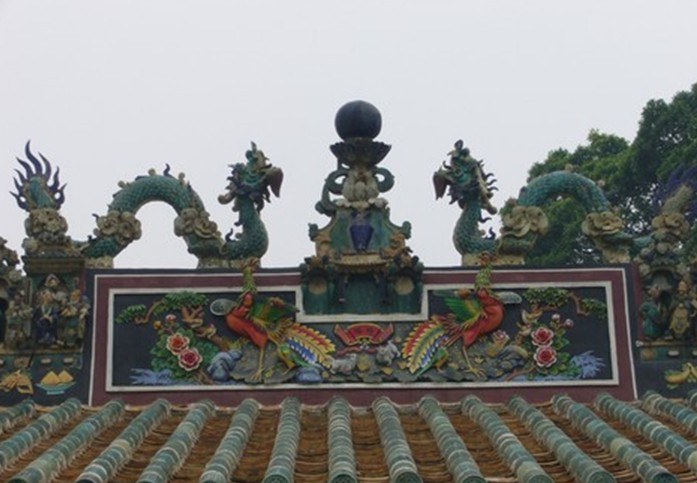 關帝廟位于廣東省鶴山市共和鎮(zhèn)大凹村。原廟已于100多年前圮廢,現(xiàn)存為光緒二十二年(1896)在原址上重建的。1948年修葺過一次。廟由山門、正殿、廂房組成,面積280平方米。營造手法與佛山祖廟相似,正殿屋頂為綠色琉璃瓦,屋脊以陶塑圖像裝飾,屋煞為光緒年間石灣名工燒制之二龍戲珠。