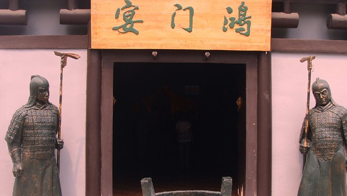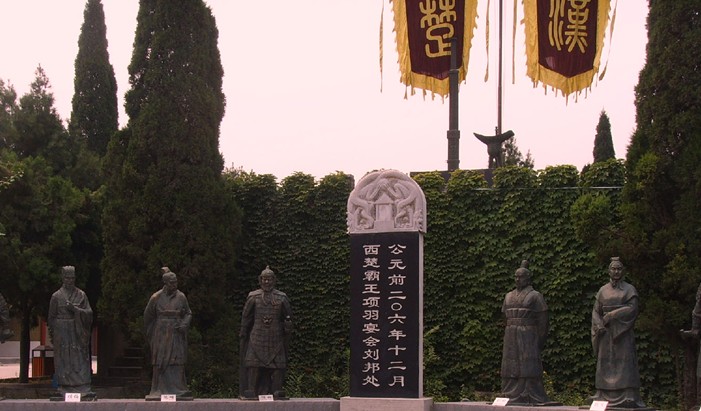 公元207年,項羽從謀士范增之計,在鴻門設宴,企圖借機殺掉劉邦,于是演出了一幕“鴻門宴”,著名的典故“項莊舞劍,意在沛公”就是指這段故事。現(xiàn)存遺址用青磚砌成,十米高的旗桿上飄揚著杏黃色的帥旗,臺子北面建了一座蒙古包似的軍帳,門口高掛“楚高軍旗”,帳內(nèi)模擬當時的宴會場面,軍帳用玻璃鋼制成,里面塑有“項莊舞劍、樊噲闖帳”等塑像,生動的再現(xiàn)了當年戰(zhàn)事中的重要一幕。