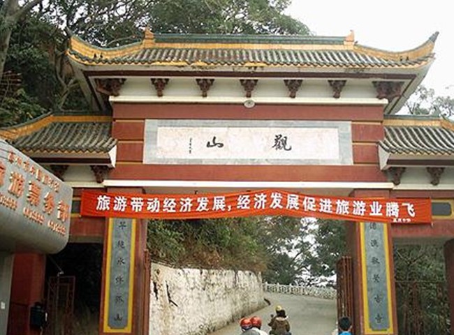 觀山寺群位于高州市之西的觀山上,觀山東臨鑒江,南對(duì)南宮嶺,山清水秀,風(fēng)景迷人。明代以來,這里先后建起了觀山寺、玉泉寺、呂仙殿、潘仙殿、報(bào)德祠等寺廟建筑群。民國期間,又開辟了中山公園,建有中山亭、若虛亭、茂植亭、詠風(fēng)亭、襟江亭、曠怡亭和斷碑亭等建筑,使觀山增添了不少色彩。在這些建筑群體的各個(gè)不同地方,分別樹有各種碑記,其中有詩碑、記事碑、記功碑、捐題碑以及各個(gè)名家題詞手跡碑記等。在山上的斷崖處,還有摩崖石刻,這些建筑群體和石刻群體,結(jié)構(gòu)有序,典雅大方,頗有風(fēng)韻。觀山寺群中,最有特色的要數(shù)觀山寺、玉泉寺等,但由于歷遭嚴(yán)重破壞。目前尚存的只有玉泉寺、呂祖殿、潘仙殿、報(bào)德祠,其余的建筑被破壞拆除。但山光水色,景貌依然。