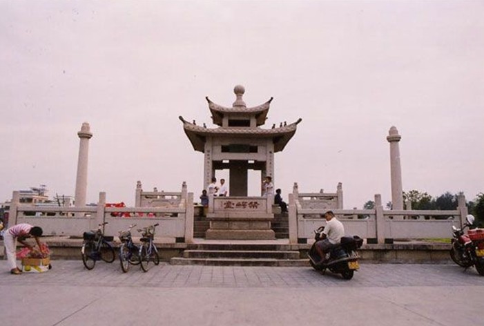 1987年,在原址修建鱷渡秋風(fēng)亭和祭鱷臺(tái)。鱷渡秋風(fēng)亭為金石結(jié)構(gòu),四柱四角雙重檐,分兩級層臺(tái),上亭下臺(tái),四周有石欄環(huán)護(hù)回廊欄桿,端莊且典雅。亭內(nèi)設(shè)祭鱷臺(tái),題書“鱷渡秋風(fēng)”、“祭鱷臺(tái)”匾額。其中一聯(lián)日:“佛骨滴來嶺海回而增重;鱷魚徙去江河自此澄清”。另一柱聯(lián)為:“溪石何嘗惡;江山喜姓韓”。亭中有一條栩栩如生的石鱷魚,脊背上堅(jiān)載大石碑,正面刻韓愈《祭鱷魚文》全文,背面刻(鱷渡亭碑記》。每年秋天,這里的景色最為迷人。