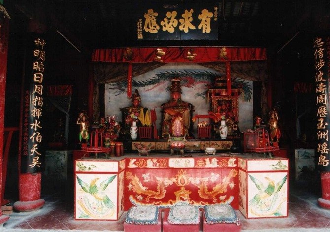 寨中個別建筑由于營造者的心理或條件等因素的作用,在構(gòu)件、建筑符號的處理上一反傳統(tǒng)樣式,形成鮮明的個性。其中最為突出的是黃府的檐口桁橫貫三跨,長約12.8米,是國內(nèi)傳統(tǒng)建筑中鮮見的超長構(gòu)件。婆祠的大門肚寬達建筑物寬度的一半,比例極為張揚,有“闊嘴祠”之稱;天后宮大門兩側(cè)的抱鼓石內(nèi)向一面,分別為剔鑿花活(浮雕),主題為雙獅戲球。在中原地區(qū),抱鼓石下部雕為須彌座,中間為鼓形,飾以花紋浮雕,上部透雕獅子,這是常見的樣式。(據(jù)《營造法原》,將圓鼓部分雕成獅形者,以術(shù)語稱,叫拉獅砷或挨獅砷。)但是在潮州卻為孤例。天后宮的門神繪著二位端莊肅穆、和藹慈祥的女性。雖然中國的門神,多是采自征戰(zhàn)疆場的武將,諸如秦瓊、尉遲恭、岳飛、關(guān)羽、韓信、趙云等男性歷史人物,但個別地區(qū)尚有繪著花木蘭、穆桂英的女性將軍。而在潮州廟宇中卻未見先列。至于天后宮門神不是將軍的形象,應(yīng)是龍湖獨有。
