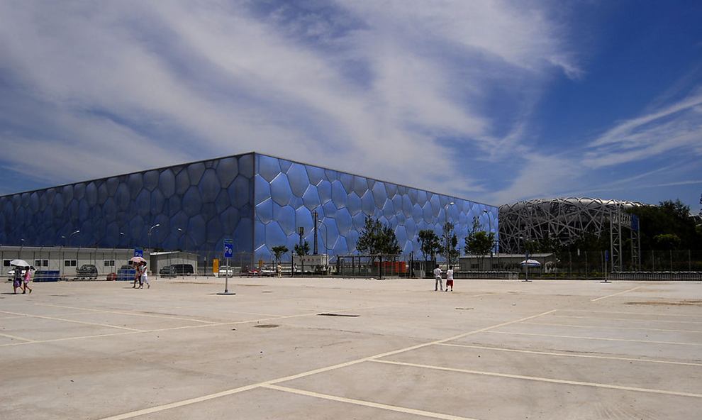國家游泳中心又被稱為“水立方”(Water Cube),位于北京奧林匹克公園內,是北京為2008年夏季奧運會修建的主游泳館,也是2008年北京奧運會標志性建筑物之一。它的設計方案,是經全球設計競賽產生的“水的立方”([H2O]3)方案。2003年12月24日開工,在2008年1月28日竣工。其與國家體育場(俗稱鳥巢)分列于北京城市中軸線北端的兩側,共同形成相對完整的北京歷史文化名城形象。國家游泳中心規(guī)劃建設用地62950平方米,總建筑面積65000-80000平方米,其中地下部分的建筑面積不少于15000平方米,長寬高分別為 177m × 177m × 30m。到目前,來自101個國家和地區(qū)的35萬多港澳臺同胞及海外僑胞共捐獻了9.4億人民幣。其中鄭裕彤、鄭家純父子及屬下企業(yè)曾捐贈五千萬元人民幣。
