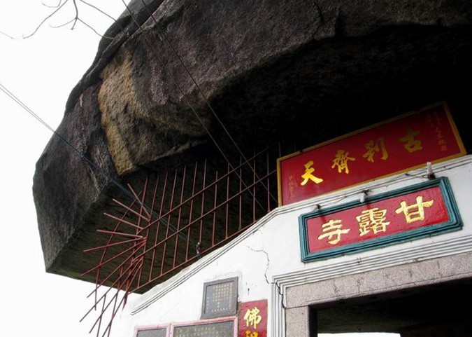 潮州甘露寺在桑浦山獅子巖半山腰,是潮汕規(guī)模最大的天然石窟寺,是一處面積近6000平方米的巖洞。據(jù)《海陽(yáng)縣志》稱:該地“前為玉簡(jiǎn)書(shū)院,后改甘露寺”,“相傳有孝子廬墓而甘露降,故名”。