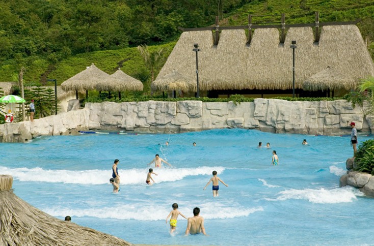 海浪池:造浪寬30米,浪高0.3-1.2米,為喜歡日光浴的客人提供了逼真的沙灘,并提供沙灘上的必需品如棕櫚樹下擺放有沙灘椅;