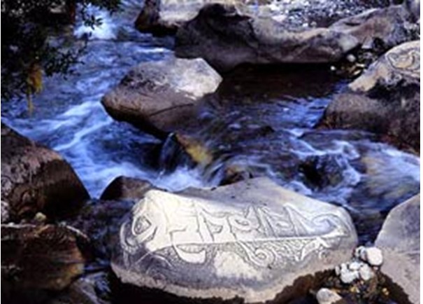 勒巴溝巖畫位于玉樹州境內(nèi)的通天河畔。沿著通天河畔的一條山徑來到這里,會使你同時(shí)產(chǎn)生兩種截然不同的情緒體驗(yàn):通天河的喧囂、壯闊和勒巴溝巖畫的靜謐、神圣。勒巴溝巖畫面江而鑿,處于勒巴溝溝口。勒巴溝內(nèi)蓊郁的草木,也難以掩蓋住由巖畫和不可勝數(shù)、遍布溝內(nèi)的嘛呢石刻散發(fā)出來的神秘氣氛。
