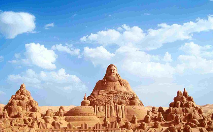 2002年張祥父子開發(fā)金沙灣時在灣內(nèi)發(fā)現(xiàn)了成吉思汗時代的10余種30多件文物,現(xiàn)在烏海文物博物館珍藏。為了紀(jì)念這位流傳千古的蒙古英雄,便建起了這座雕塑,這是蒙古民族的驕傲,這是中華民族的驕傲。