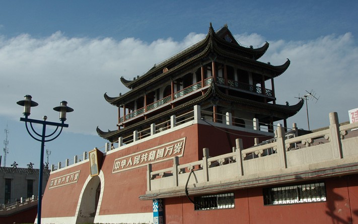 “南薰樓”,早在西夏就已存在。50年代以來,南門樓多次整修,開辟成南門廣場(chǎng),成為群眾集會(huì)的場(chǎng)所。因其建筑與北京天安門有些相似,所以人們又稱它為“小天安門”。