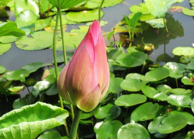 站在青石砌成的觀賞臺上,憑欄而觀,仿佛是綠波蕩漾中的一葉小舟,在此起彼伏的一片荷海中,隨波輕漂,粉霞點(diǎn)點(diǎn),宛如天成的錦繡。怒放者有之,含苞者有之,傲然挺立者有之,含羞隱藏者有之,形態(tài)各異,各種風(fēng)姿盡收眼底。