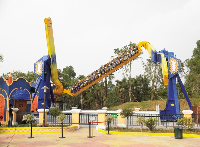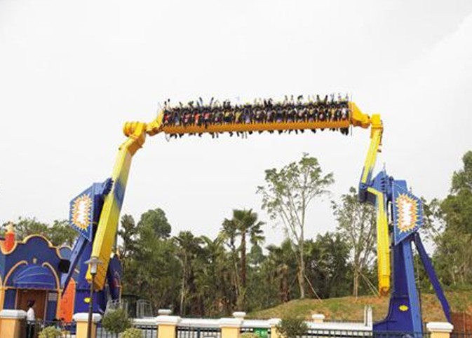 亞洲獨一無二的U型滑板,版權所有山東聊城聊之旅國際旅行社有限公司,轉載必究!是跳樓機與過山車的完美結合,靈感來自廣受年輕人喜愛的時尚滑板運動,它聳立天際,帶著你一邊360度旋轉,一邊急速沖鋒,將驚險刺激發(fā)揮到極致,隨著滑板的起落,一顆心在蹦出與去落回來間急速轉換,痛快無比。