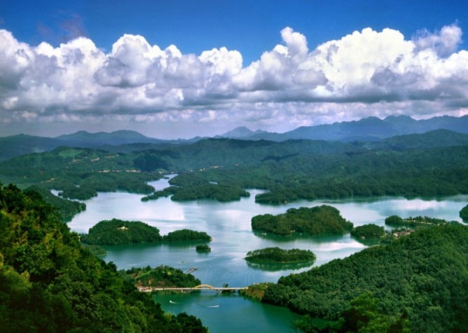 流溪河國家森林公園是經(jīng)林業(yè)部批準(zhǔn)建立的首批國家十大森林公園之一,總面積8831公頃,其中流溪湖于一九五八年建成,面積1466公頃,蓄水量3.6億立方米,水深約70米,在碧波萬傾的湖面上,分布著大小二十二個島嶼,如白玉翡翠。在公園的東南部,聳立著五指山、牛角山、雞枕山等海拔千米以上的山峰六座。其中雞枕山海拔1146.7米,是公園內(nèi)第一高峰。登高望遠(yuǎn),一派“遠(yuǎn)山時明滅”、高峽出平湖“的壯觀景象奔來眼底,使人頓覺置身仙幻奇景之中。