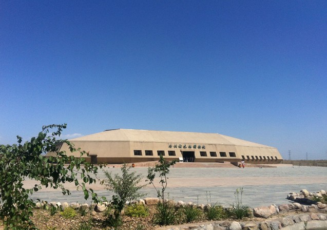 水洞溝遺址博物館建筑面積4308平方米,外形仿水洞溝出土的石器,是我國(guó)西北地區(qū)唯一展示舊石器時(shí)代文化面貌的主題博物館。它在傳統(tǒng)博物館參觀性功能的基礎(chǔ)上融入藝術(shù)性、文學(xué)性和高科技的創(chuàng)新元素。以270度超大型半景畫、實(shí)景、幻影成像等展示形式,結(jié)合世界最先進(jìn)的聲、光、電、可調(diào)式地震平臺(tái)等技術(shù)的運(yùn)用。