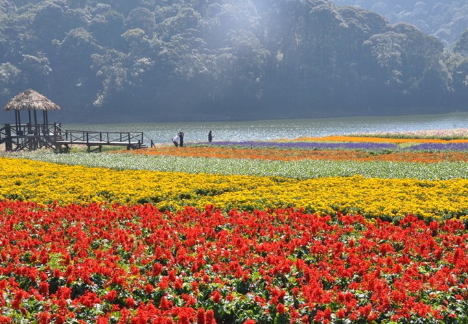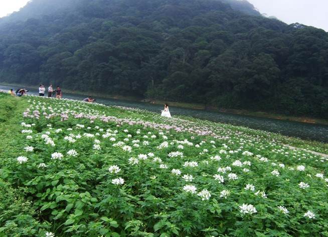 海拔800多米的石灶天池之畔,每年不同時候都會種植大面積的高山花卉,因此被稱為“天池花海”。金黃的油菜花、搖曳的大波斯菊、神秘的醉蝶花,倒映在碧綠的湖水中,與華南地區(qū)保存最完好的的原始次生林隔岸相望。新人執(zhí)手花間,戲水湖畔,讓碧水和青山見證他們的愛情。“天池花海”最近的花卉主題是“五色花海”和“醉蝶花海”,在每年9月下旬至11月中旬推出,相信會吸引更多新人。