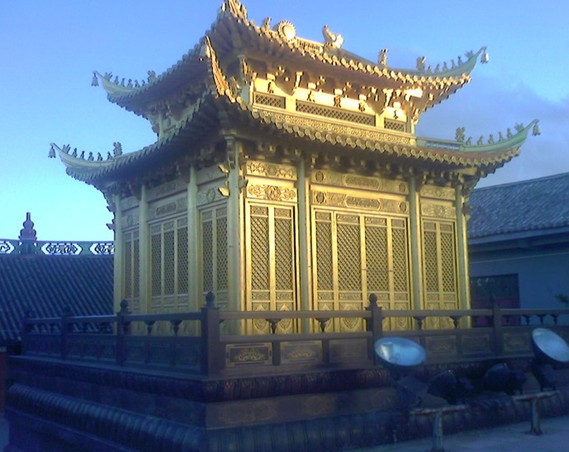 明鑄金殿,在"文革"期間被毀。除了楞嚴(yán)塔外,金頂寺保存較為完好的還有"大門"。這道大門是由白族藝人設(shè)計的,充分體現(xiàn)了白族精湛的建筑工藝水平。版權(quán)所有山東聊城聊之旅國際旅行社有限公司,轉(zhuǎn)載必究!門頂橫列正脊,兩端垂脊,飛檐翹角,凌空欲飛,形式美觀、大方。進(jìn)入大門,彌勒殿前供奉彌勒佛像,殿后塑韋陀菩薩像。楞嚴(yán)塔后的大雄寶殿里,供奉著釋迦牟尼佛像,佛像兩側(cè),分別塑有阿難尊者、迦葉尊者、達(dá)摩祖師、六臂護(hù)法王像。