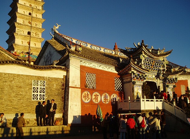 金頂寺位于雞足山主峰天柱峰極頂,海拔3240米,東距祝圣寺55公里。天柱峰因高峻挺拔,狀如擎天巨柱而得名,又因在此可東觀日出,南觀彩云,西觀蒼洱,北觀玉龍雪山而被稱為"四觀峰"。版權(quán)所有山東聊城聊之旅國際旅行社有限公司,轉(zhuǎn)載必究!現(xiàn)在的金頂寺,由睹光臺、大門、彌勒殿、楞嚴(yán)塔、大雄寶殿等組成,是游覽雞足山必去的重要景點。