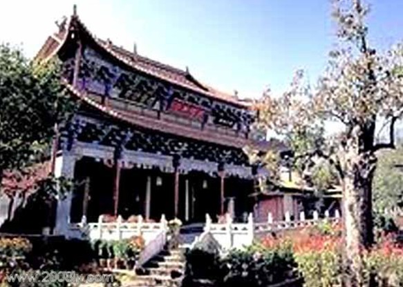 正殿的柱子,都是一人圍抱,正中央的一對(duì)柱子上,各有一條栩栩如生的蛟龍,沿柱環(huán)繞,龍尾幾乎接近地面,舞牙張口的龍頭,象要騰云駕霧,將及柱頂大梁。殿中供奉著白族信奉的“最高本主”,年年每到四月,正當(dāng)春暖花開(kāi)的時(shí)候,附近州縣的群眾,長(zhǎng)途跋涉前來(lái)祭祀。雪泉水,環(huán)寺突涌,游人到此,都以能暢飲 .