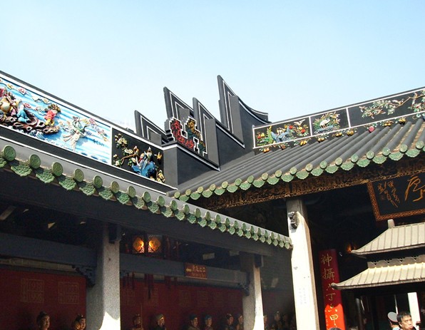 廟中的建筑雕飾,集丹青、木刻、磚雕、灰雕等各種藝術(shù)于一體,其雕飾物形象生動,栩栩如生,集中了嶺南古建筑藝術(shù)的精華,被譽為“桂殿蘭宮”。同時,整座廟宇造型各異,有方形、八角形,也有覆盆狀的。柱子有石柱、木柱,柱的截面有方形、八角形、圓形,也有轉(zhuǎn)角柱。