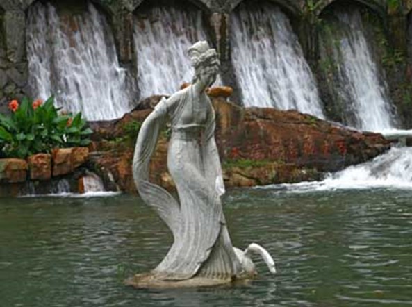 位于瀑布之頂頭甲山上,版權(quán)所有山東聊城聊之旅國際旅行社有限公司,轉(zhuǎn)載必究!始建于1972年,是從化縣當(dāng)時五項(xiàng)水利工程之一。因建在“百丈飛濤瀉漏天”的高山之上,故命名為“天湖”,喻天上之湖的意思。天湖湖面近1平方公里,縱長7公里,蓄水量為1034萬立方米。湖中建有湖心亭。壩下有仙女池,池中有廣州雕塑家唐大禧雕塑的仙女像。仙女腳踏蓮臺,一手輕提衣紗,栩栩如生,飄然于池中,意欲戲水。仙女池下便是著名的溫泉瀑布。天湖中還備有游湖快艇,人們可乘坐快艇,飽覽湖光山色。