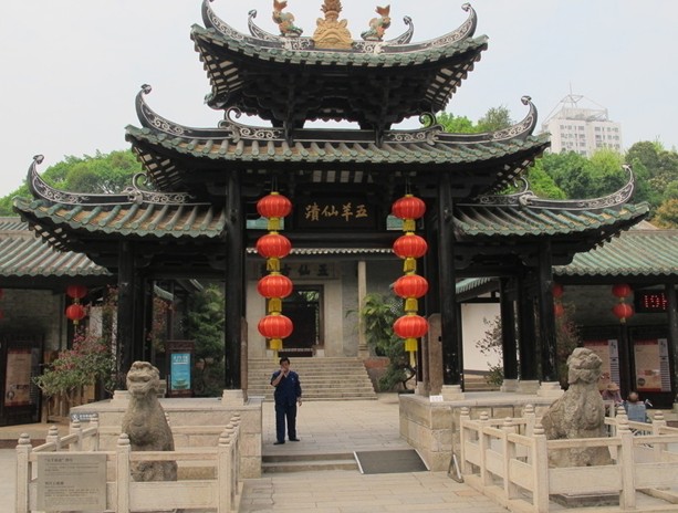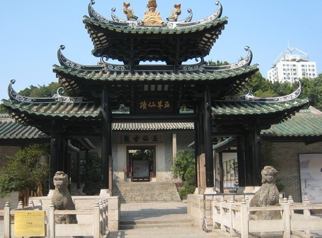 “五仙觀(guān)”解放前在惠福西路內(nèi)街,是廣州建城2000年的歷史標(biāo)志,傳說(shuō)遠(yuǎn)古年代有五仙人騎著五色羊,五羊銜著谷穗降臨廣州海珠廣場(chǎng)原五仙門(mén)電廠(chǎng)附近(電廠(chǎng)原址是五仙街)。五仙喜降臨,令廣州風(fēng)調(diào)雨順,五谷豐登,國(guó)泰民安。為紀(jì)念五仙福祉,稱(chēng)廣州為“羊城”。