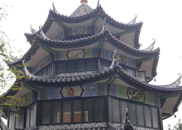 行到回廊深處,便是遠近聞名的“玲瓏水榭”了。它環(huán)水而立,是園內(nèi)第四所建筑俗稱“八角亭”。水榭呈八角形,八面全是窗戶,結(jié)構(gòu)高雅。這樣一來,既能八面通風,又可以八面觀景。對于八角亭的八景,有一首五律詩概括得很好,那詩就是:“丹桂迎旭日,楊柳樓臺青;臘梅花開盛,石林咫尺形;虹橋清輝映,臥瓢聽琴聲;果壇蘭幽徑,孔雀盡開屏。中國園林建筑藝術(shù)風格獨特,強調(diào)詩情畫意。“玲瓏水榭”之所以遠近傳名,就因為它既有詩情,又有畫意。