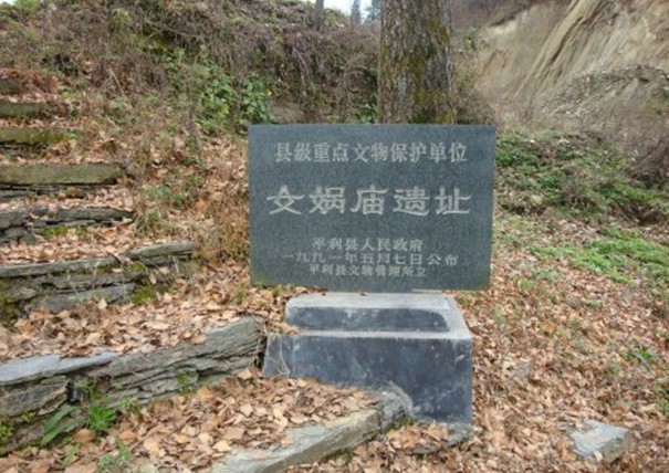 女媧廟坐落在安康市女媧山鄉(xiāng)七里村。據(jù)當?shù)匕傩战榻B,解放初期的女媧廟十分龐大壯觀,在平利堪稱第一寺廟,有四扇大門,房宇百余間,殿堂三層,故又稱“三臺寺”;廟內(nèi)住僧人二三十余、居士若干。但在歷經(jīng)了戰(zhàn)亂、土改、“文革”等重重劫難后,現(xiàn)僅存一間正殿和“平心門”的殘墻斷壁。
