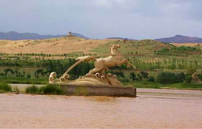 中衛(wèi)市城區(qū)有一條最古老的引水渠叫“美利渠”,它的引水原理是在河心筑堤引水,因此被稱為寧夏的“都江堰”。河水撞擊在10里引水長(zhǎng)堤上,但見(jiàn)浪花飛濺,恰似白云翻飛,遠(yuǎn)遠(yuǎn)望去,宛如一匹白馬拖著長(zhǎng)長(zhǎng)的韁繩馳騁在黃河之中,這便是中衛(wèi)古八景之一的“白馬拉韁”。
