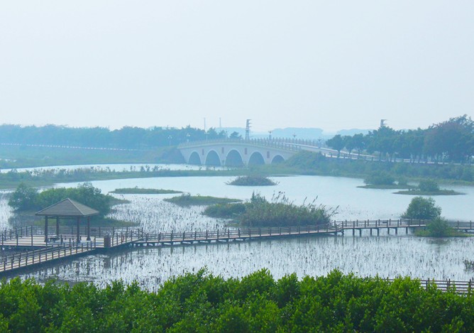 途中景點(diǎn): 荷塘景觀 > 鳥(niǎo)類(lèi)覓食區(qū) > 蘆葦區(qū) > 海景長(zhǎng)廊 > 紅樹(shù)林區(qū) > 蓮花區(qū)
