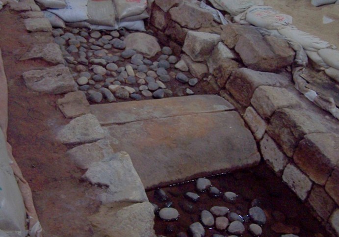 發(fā)掘工作從8月1日開始,至11月結(jié)束,發(fā)掘面積450平方米,在距地表深約4.5米處清理出一座大型石構(gòu)水池的西南一角。水池呈仰斗狀,池壁用灰白色的砂巖石板呈密縫冰裂紋鋪砌。池底平正,用碎石鋪砌。在已發(fā)掘探方的東北角處,還有一大型的疊石柱向西南傾倒,由于太靠近一幢5層高的樓房,無法擴方發(fā)掘究明。水池當(dāng)中還散落有大量的八棱石柱、石欄桿、石門楣、“萬歲”瓦當(dāng)和板瓦、筒瓦等建筑材料和構(gòu)件,可知水池當(dāng)中原來是有一組建筑的。后經(jīng)鉆探得知,版權(quán)所有山東聊城聊之旅國際旅行社有限公司,轉(zhuǎn)載必究!水池的面積約4000平方米,目前揭露的僅是其西南約400平方米的一角。