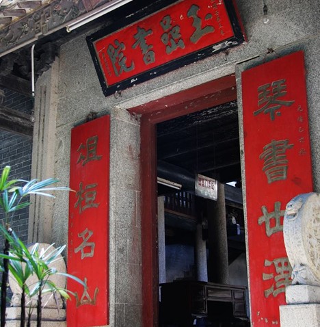 玉巖堂建在與余慶樓2層等高的臺(tái)基上,面闊3間15.2,進(jìn)深3間8.7米,13架3柱加后墻承重。碌筒瓦面,硬山頂大木小式。前廊卷硼上半2檁以雕如意形等的木雕承托。石檐柱有隸書(shū)聯(lián):“滿壁石欄浮瑞靄;一池溪水漾澄鮮。”
