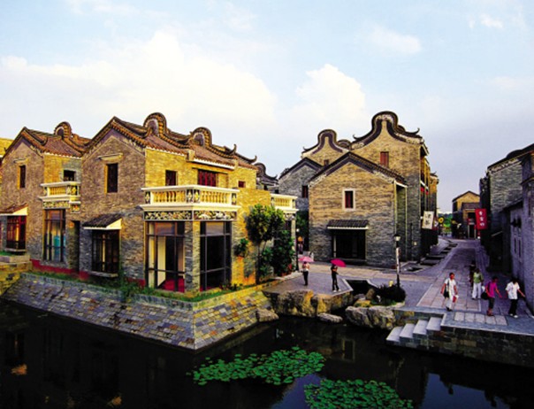 嶺南印象園位于廣州大學城所在的小谷圍島,總占地面積達16.5 公頃。這里四面環(huán)水,西臨洛溪島、北臨生物島、東臨長洲島、與會展中心所在的琶洲島隔江相望,交通便利。嶺南印象園依托天然的地域優(yōu)勢和原練溪村深厚的嶺南民風民俗文化,建立了一個融文化觀光、趣味游樂、特色餐飲、休閑購物、精彩演藝于一體的大型休閑文化旅游景區(qū)。