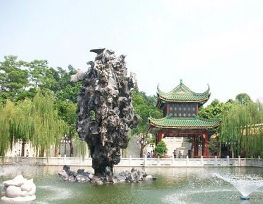 這里有樹齡三、四十年以上的金桂、銀桂幾十棵,形成一個桂花林。每當花開時節(jié),幽香陣陣,令人心曠神怡。其中有八棵桂花種在八個大花壇中。花壇四面均雕塑著“牡丹迎春”、“松鶴長青”、“李白醉酒”等花鳥蟲魚和人物故事的灰塑浮雕畫,工藝精巧、色彩艷麗、生動形象,充分體現(xiàn)嶺南園林建筑特色。桂花林中,還有一座名為“頤樂亭”的八角亭,這是一座具有皇家園林特色的涼亭。綠色琉璃瓦蓋頂,外觀兩層,內看一層。亭內彩繪裝飾,頂部有幾幅人物古畫,線條流暢,形象生動,高貴典雅,很有欣賞價值。亭內小座,暗香浮動,氣韻高雅,是騷人墨客賞景賦詩的好地方。