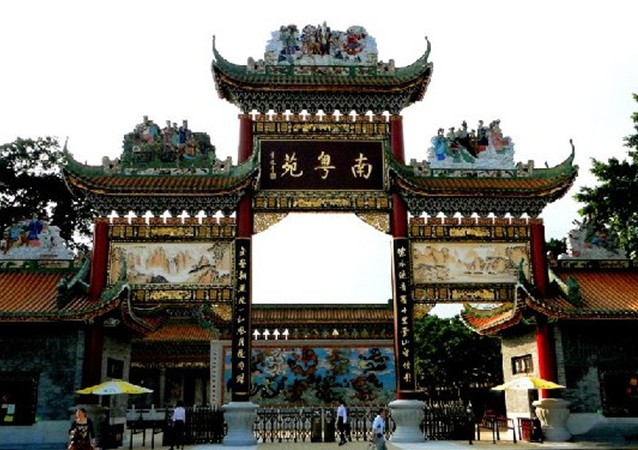 南粵苑位于廣州番禺沙灣鎮(zhèn)紫坭村大川崗,東臨紫坭河,南接寶墨園,西倚村民居,北望耕作區(qū),占地100多畝,是一座山水園林與嶺南建筑相融合、藝術珍品與嶺南園林并茂的大型山水園林。南粵苑是嶺南名園寶墨園的“姐妹園”,是寶墨園建設的深化與伸延,她展現(xiàn)了沙灣歷史文化名鎮(zhèn)和禺山風采。但與寶墨園相區(qū)別的是,寶墨園盡顯嶺南水鄉(xiāng)風韻,南粵苑則更集中展示嶺南建筑藝術精髓。南粵苑的誕生可謂是番禺旅游的一張新名片,也是沙灣文化古鎮(zhèn)的一道亮麗風景線。