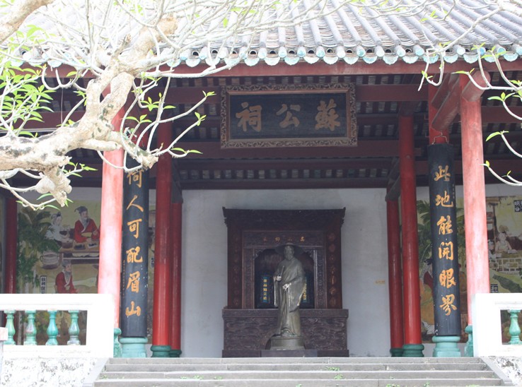 蘇公祠與五公祠相毗鄰,原為金粟庵。明萬歷時在此建立祠堂,稱蘇公祠。是紀念宋代著名詩人蘇軾,同時,也崇祀他的弟弟蘇轍,故亦稱二蘇祠。祠內(nèi)陳列蘇東坡詩詞碑刻等30多塊。祠前有一對聯(lián):“此地能開眼界,何人可配眉山”。因蘇東坡謫居海南地區(qū),講學明道,教化日興,瓊州人文之盛,實自蘇軾起。